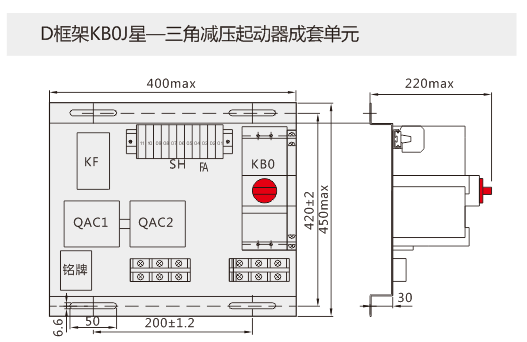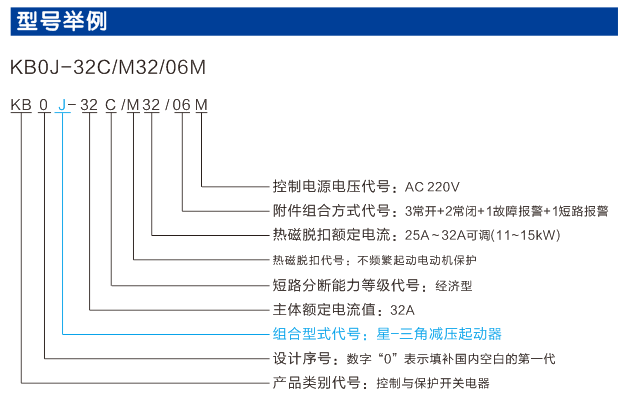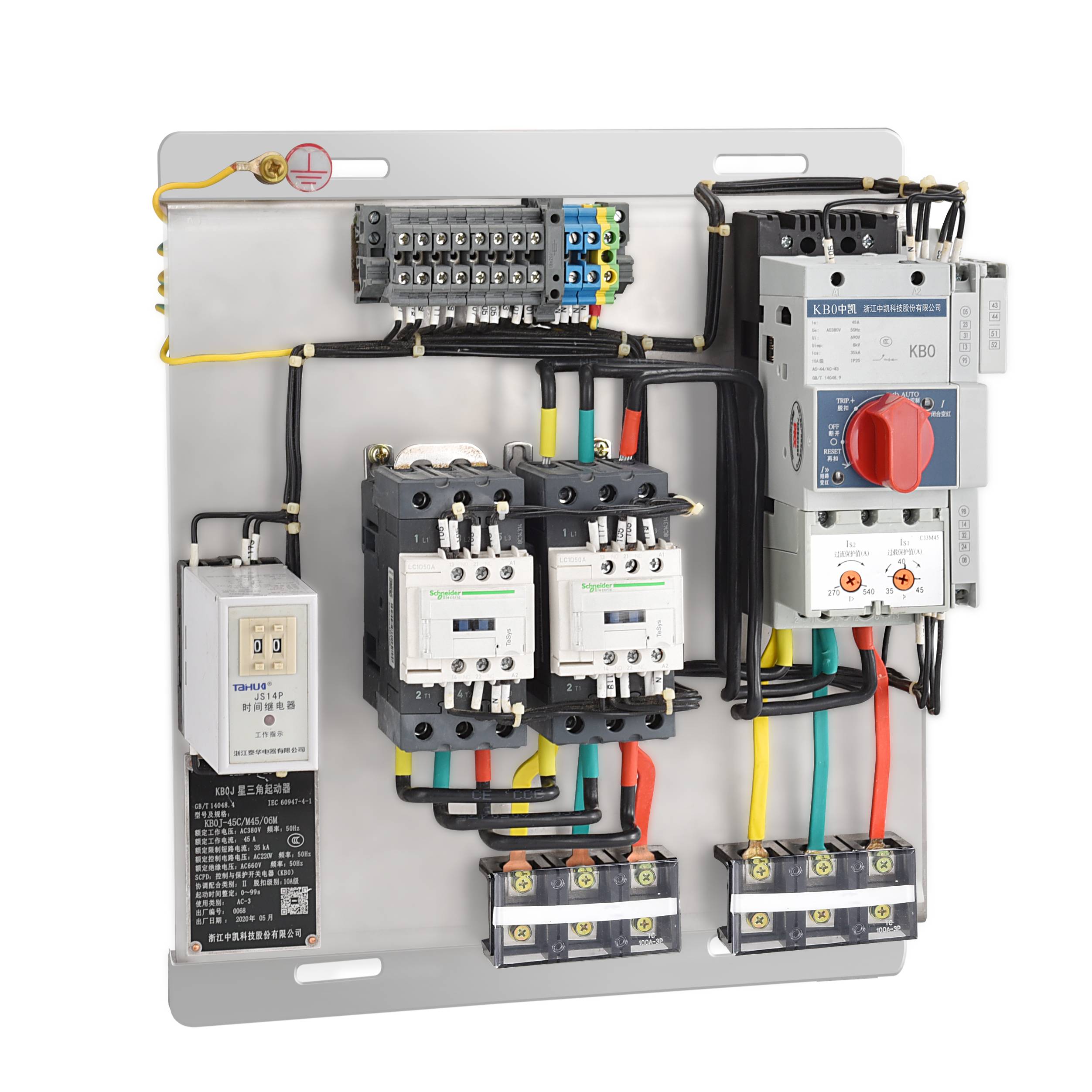 以KB0作為主開關(guān),與接觸器、時間繼電器、電氣聯(lián)鎖等附件組合,構(gòu)成Y-△減壓起動器成套單元KB0J(以KB0-F消防型產(chǎn)品作為主開關(guān),可構(gòu)成消防型Y-△減壓起動器成套單元KB0J-F)可實現(xiàn)110kW及以下的電動機的Y-△減壓起動控制與保護。