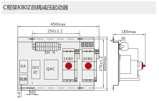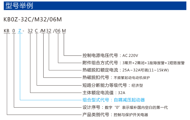 以KB0作為主開(kāi)關(guān),與接觸器、時(shí)間電流轉(zhuǎn)換裝置、電氣聯(lián)鎖等附件組合,構(gòu)成自耦減壓起動(dòng)器成套單元KB0Z(以KB0-F消防型產(chǎn)品作為主開(kāi)關(guān),可構(gòu)成消防型自耦減壓起動(dòng)器成套單元KB0Z-F)可實(shí)現(xiàn)110kW及以下的電動(dòng)機(jī)的自耦減壓起動(dòng)控制與保護(hù)。
