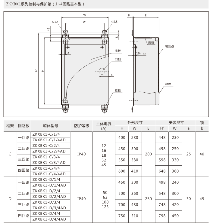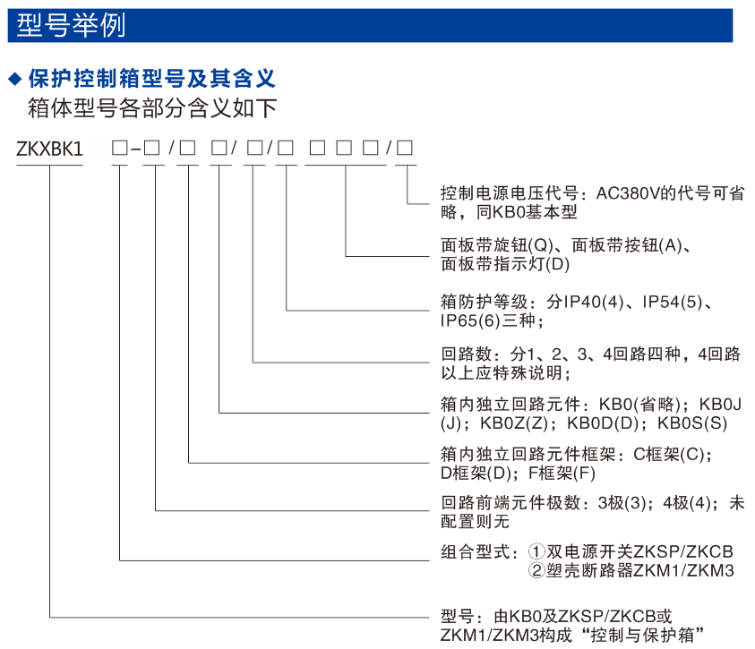 其以KB0作為主開(kāi)關(guān),配用不同的防護(hù)等級(jí)箱體,可構(gòu)成防護(hù)等級(jí)為IP40、IP54、IP65等多種等級(jí)的保護(hù)控制箱ZKXBK1,適用于戶外以及遠(yuǎn)程單獨(dú)負(fù)載的控制與保護(hù)。由KB0、KB0-F、KB0-G、KB0S3、KB0D、KB0N、KB0J、KB0J2、KB0Z等組合構(gòu)成單回路、多回路等多種形式;根據(jù)需要,在箱體面板上可配備選擇開(kāi)關(guān)、旋鈕、按鈕、信號(hào)燈等。與傳統(tǒng)的各種保護(hù)箱、綜合式、電磁起動(dòng)器相比,具有體積小、重量輕、操作安全可靠、接線便捷、防護(hù)等級(jí)高等特點(diǎn),且可以選擇就地控制、遠(yuǎn)程控制和二者兼有的方式進(jìn)行操作,是替代傳統(tǒng)產(chǎn)品的極佳選擇。