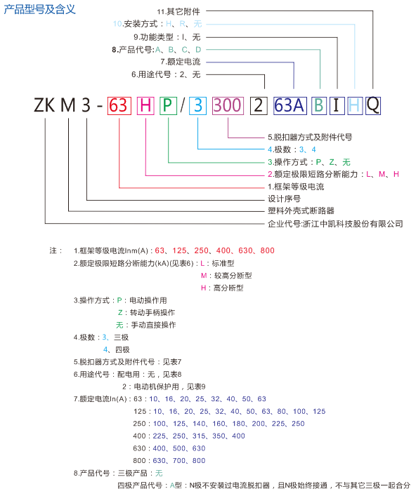 ZKM3 系列塑料外殼式斷路器(以下簡稱斷路器),其額定絕緣電壓為800V,適用于交流50Hz,額定工作電壓690V及以下,額定工作電流至800A的電路中作不頻繁轉(zhuǎn)換及電動機不頻繁起動(ZKM3-800無電動機保護型)之用。